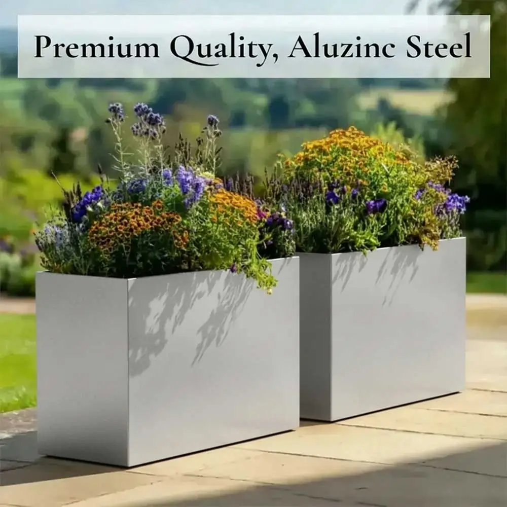 - Constructed to last, this planter is crafted from galvanised Aluzinc®with a safeguarded finish, ensuring it remains impervious to rust and frost. This versatility makes it suitable for year-round use, whether indoors or outdoors.