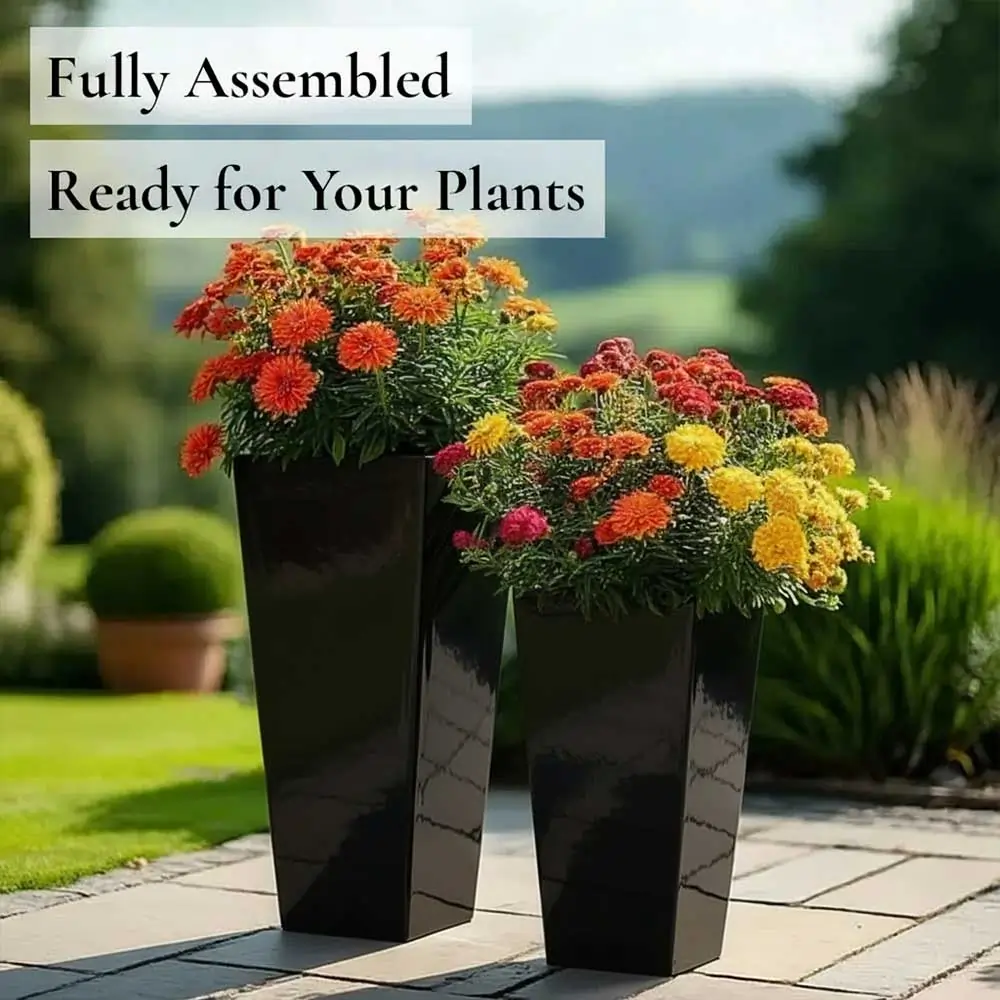 70cm Zinc Galvanised Polished Black Tall Tapered Square Planter